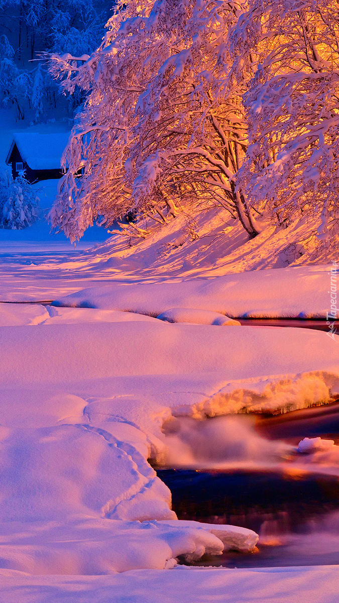 Edytor tapety: Zimowy leśny strumyk