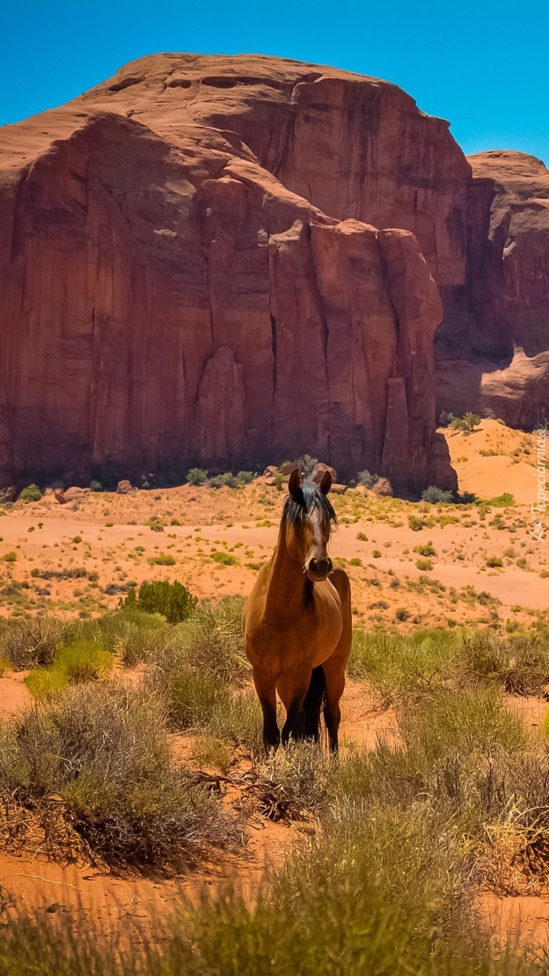 Edytor tapety: Koń na tle skał