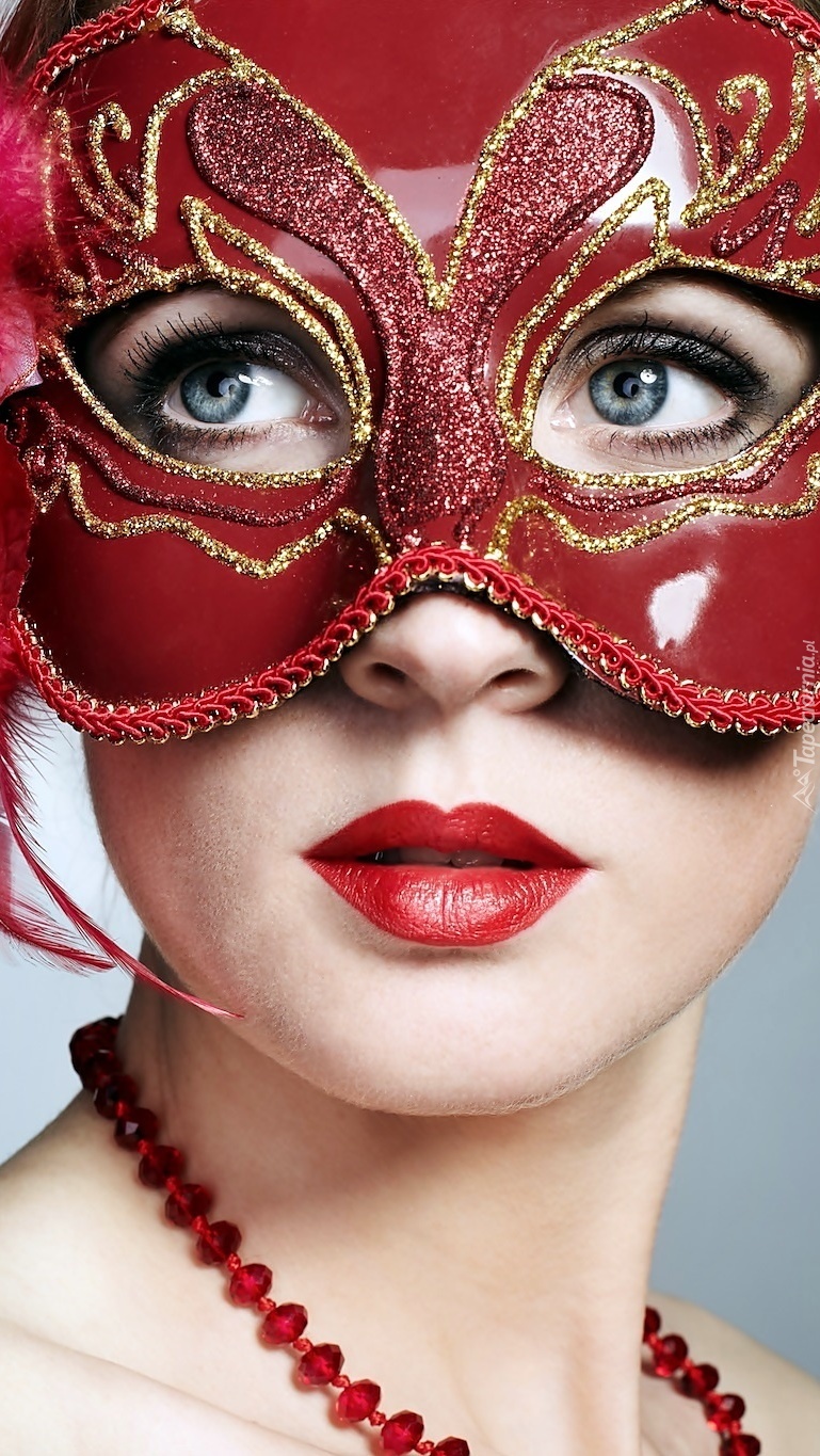Edytor tapety: Kobieta w czerwonej masce karnawałowej