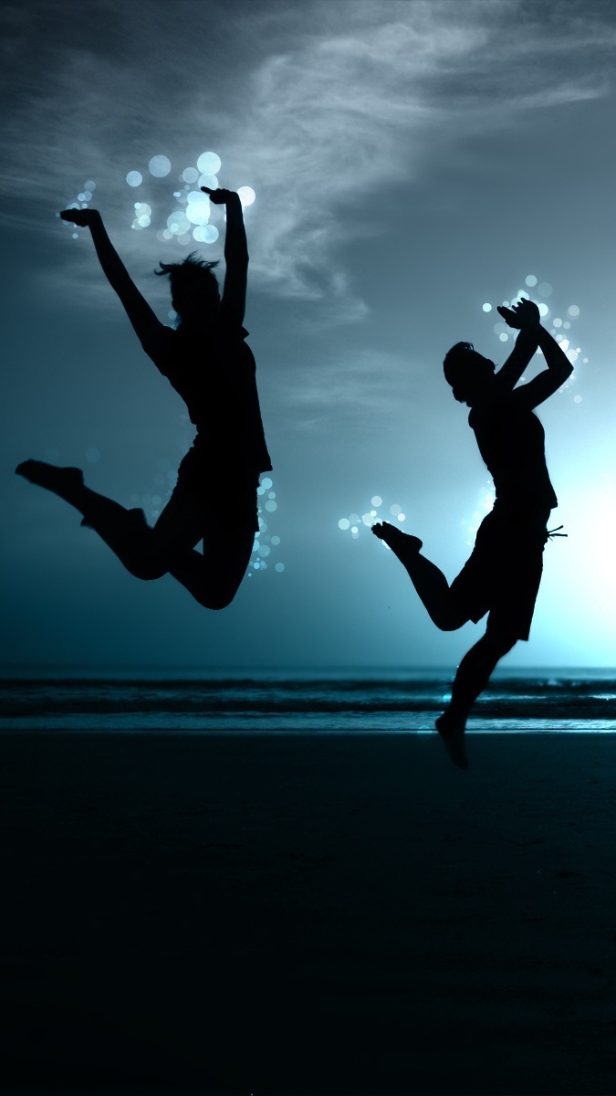 Edytor tapety: Radośni ludzie na plaży wieczorem