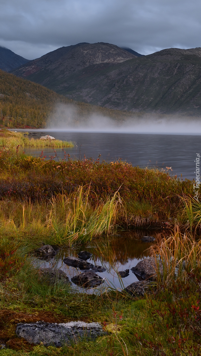 Edytor tapety: Góry i mgła nad jeziorem Sosedneye