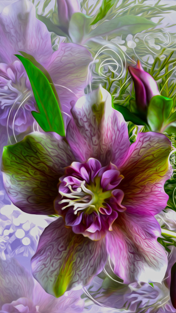 Edytor tapety: Fioletowy kwiat z pąkiem