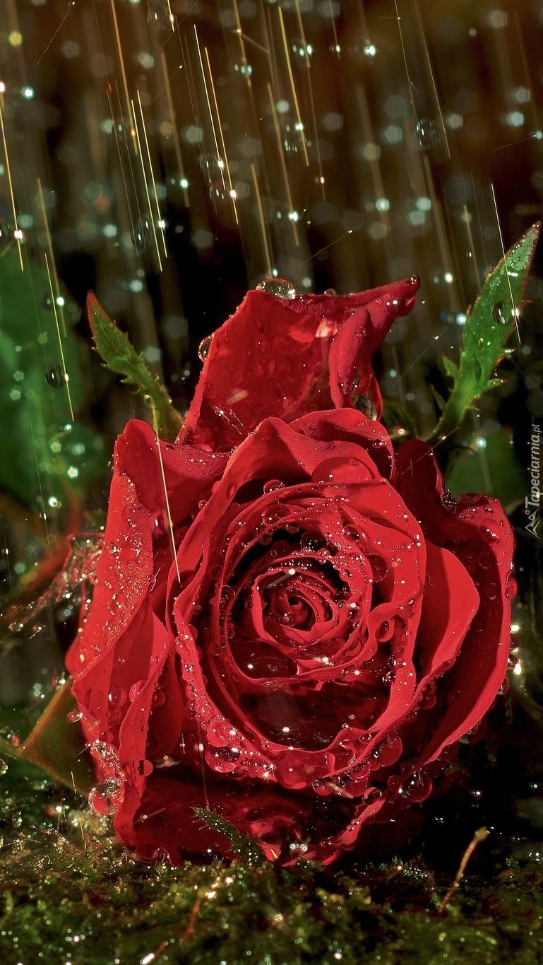 Edytor tapety: Czerwona róża w deszczu