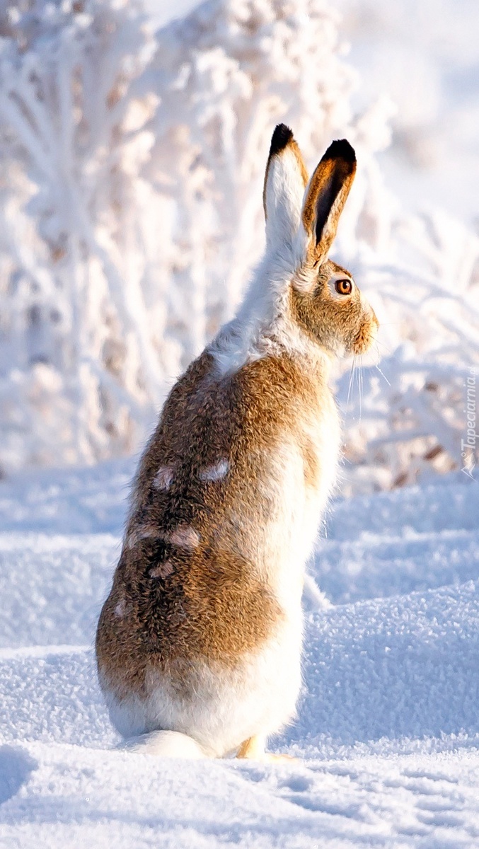 Edytor tapety: Zając białoogonowy wtopiony w biel śniegu