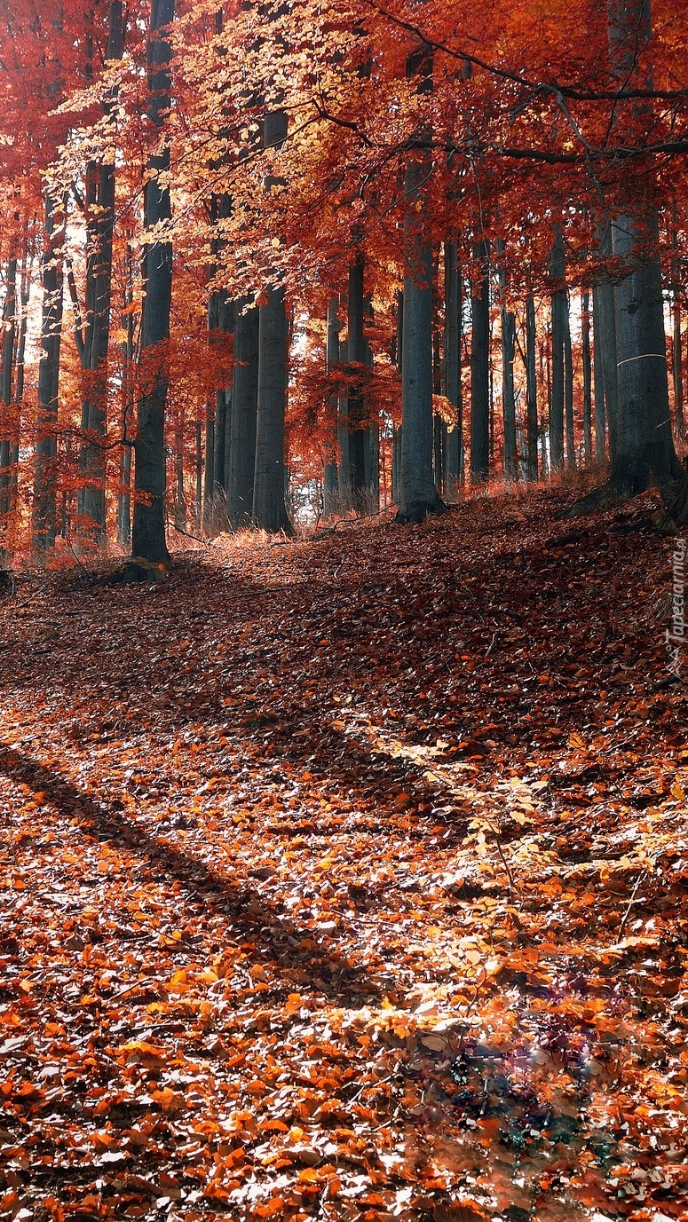 Edytor tapety: Jesienny las wysłany kolorowymi liśćmi