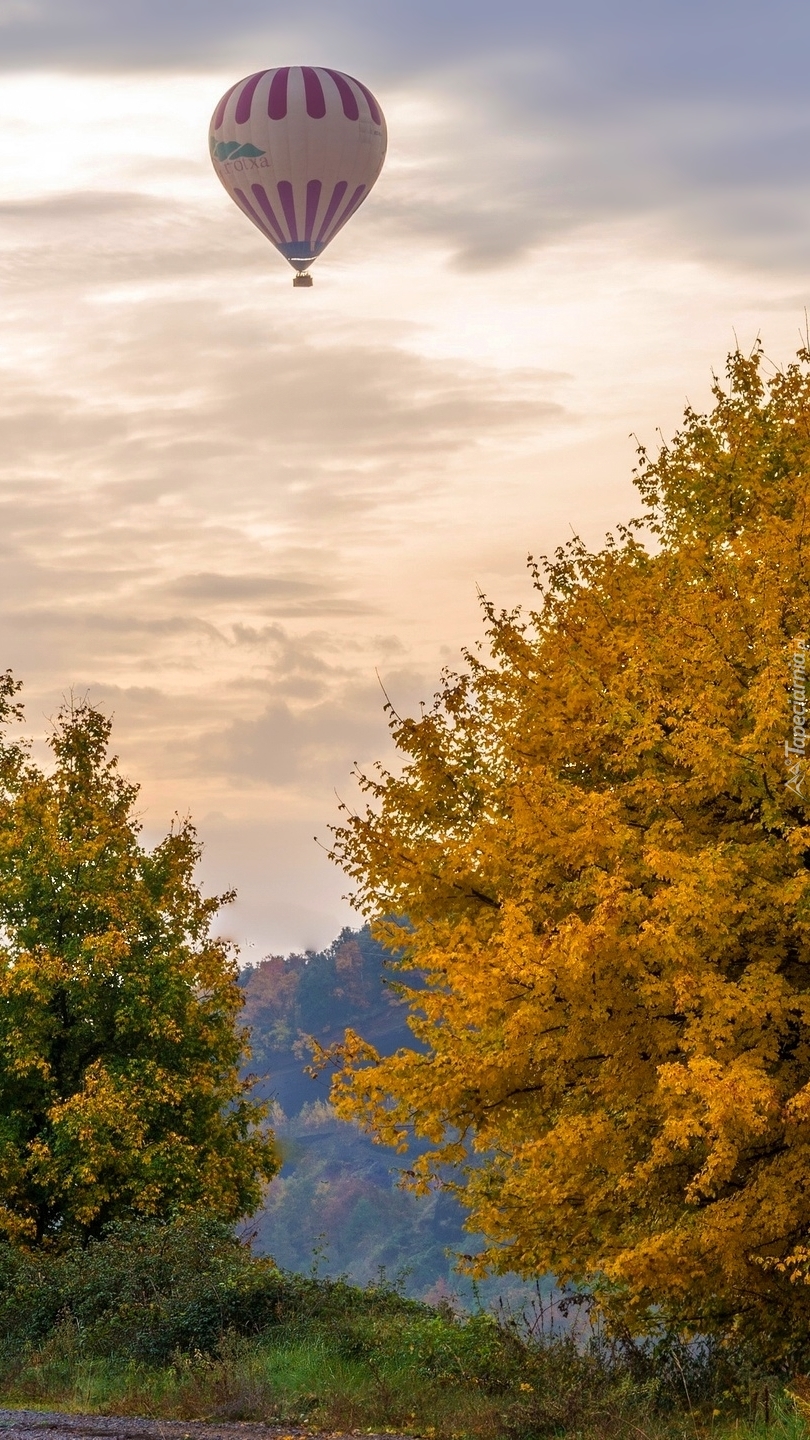 Edytor tapety: Balon nad kolorowymi drzewami