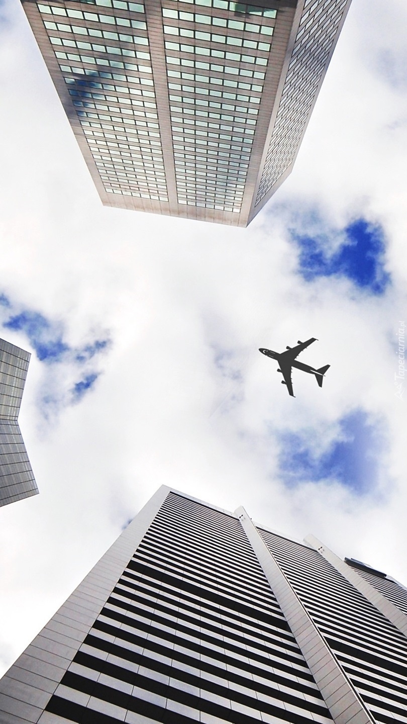 Edytor tapety: Samolot ponad drapaczami chmur