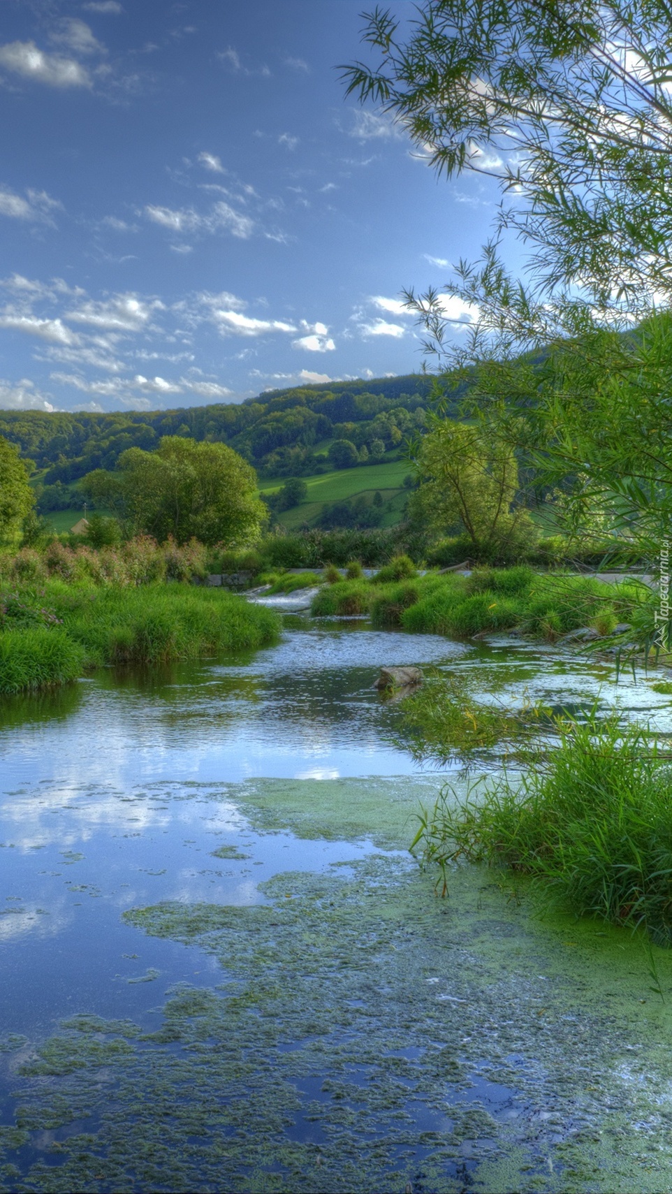 Edytor tapety: Rzeczka opływająca każdą kępkę trawy