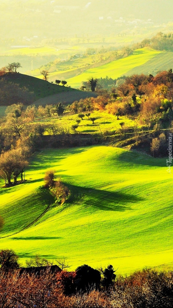 Edytor tapety: Pola w górach