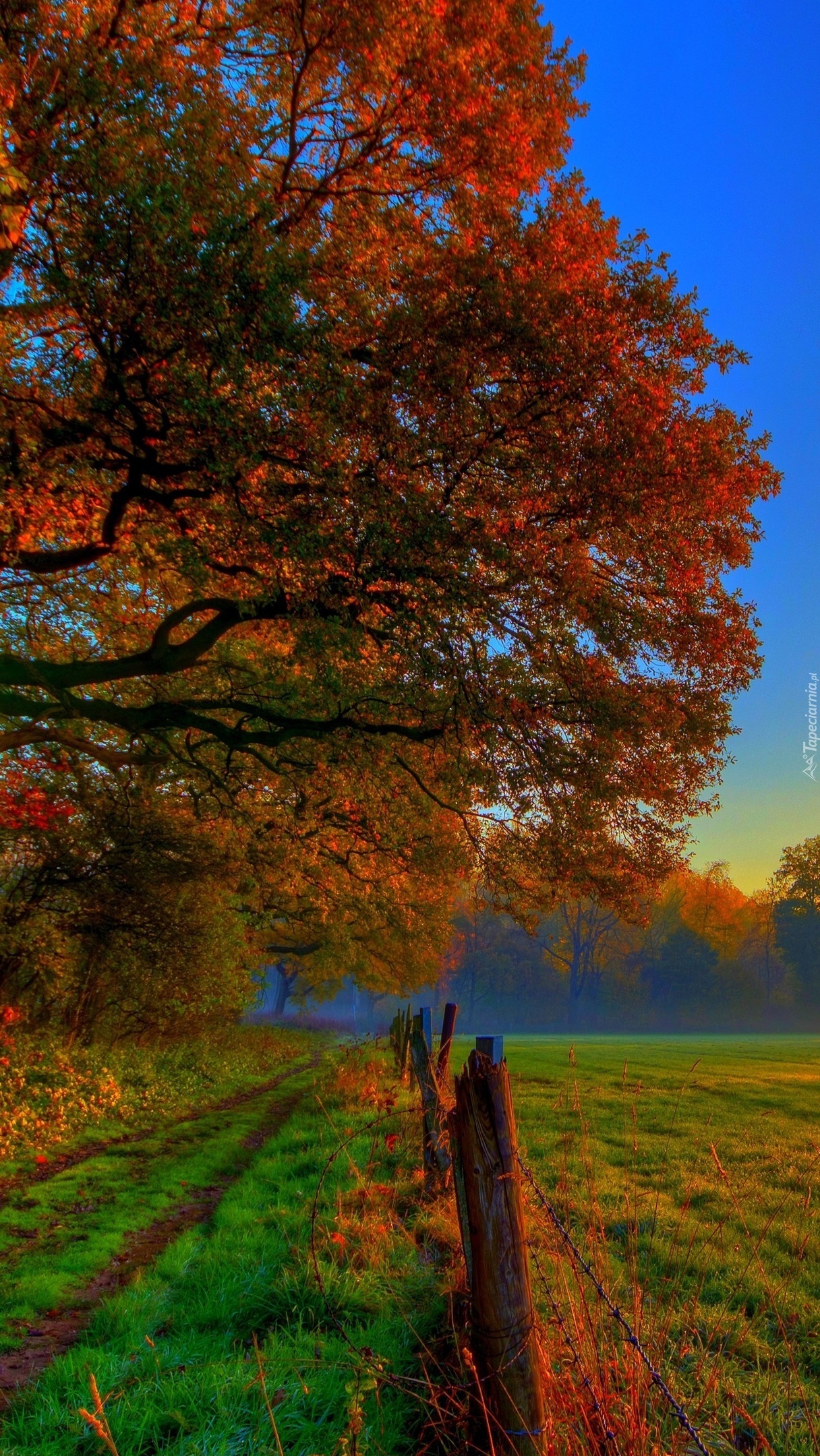 Edytor tapety: Polna droga pod jesiennym drzewem