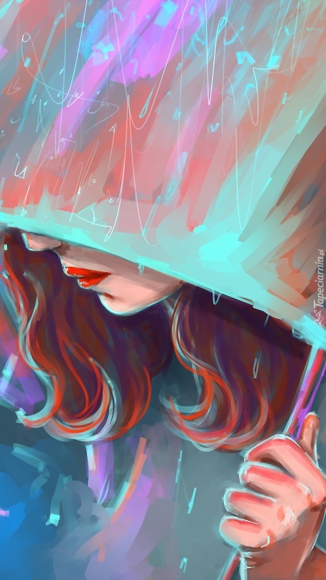 Edytor tapety: Rudowłosa dziewczyna pod parasolem