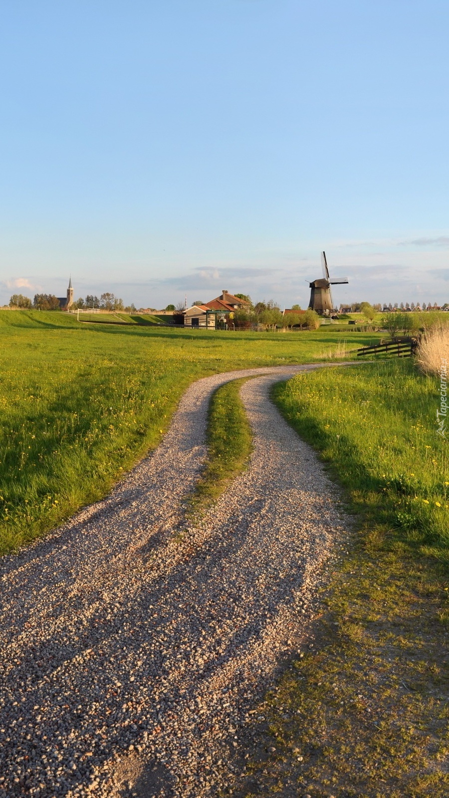 Edytor tapety: Wiatraki w oddali przy drodze