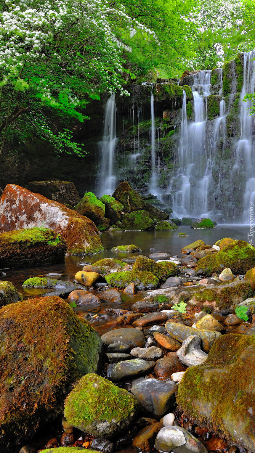 Edytor tapety: Omszałe kamienie pod wodospadem