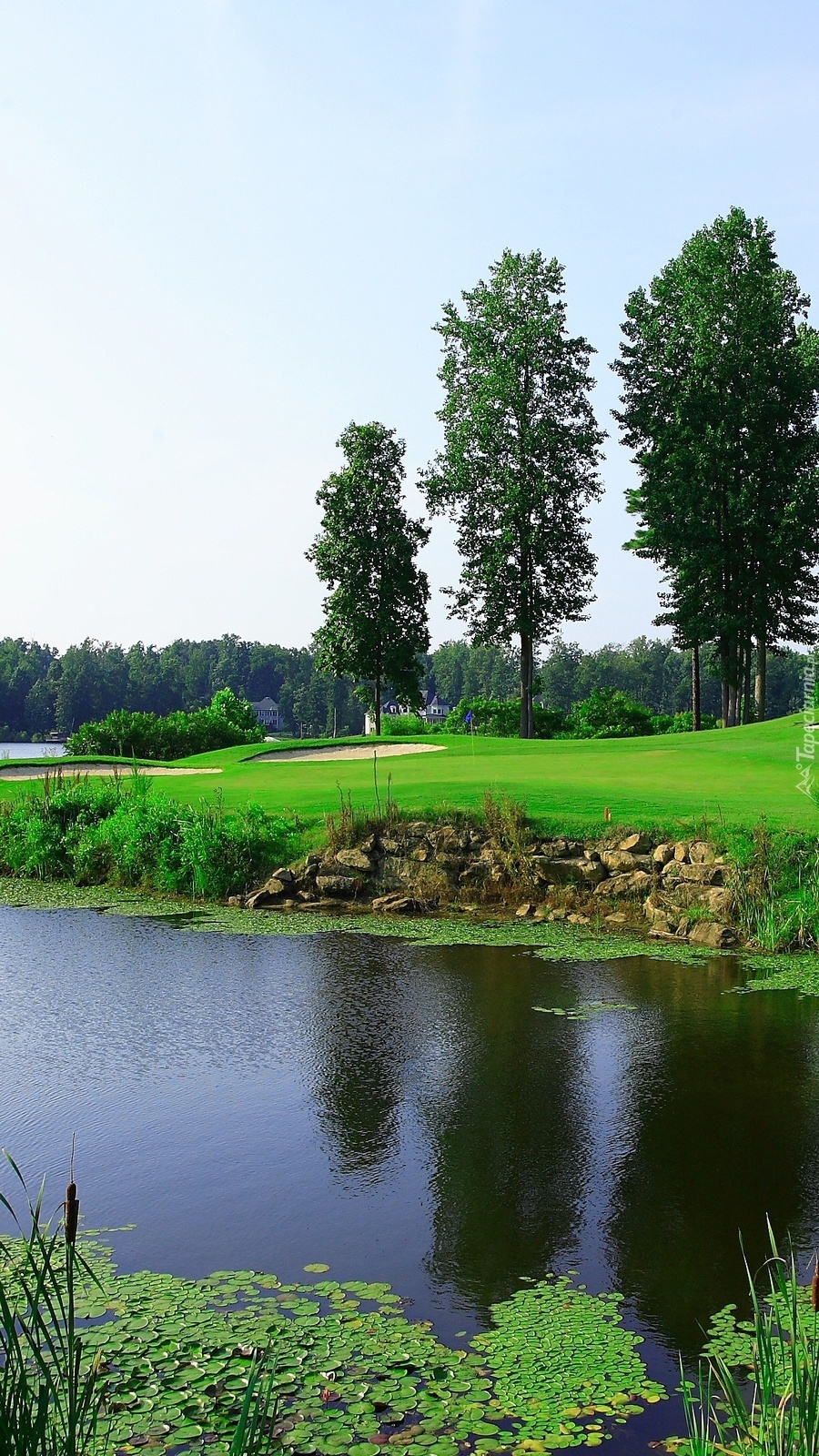 Edytor tapety: Pola golfowe nad rzeką