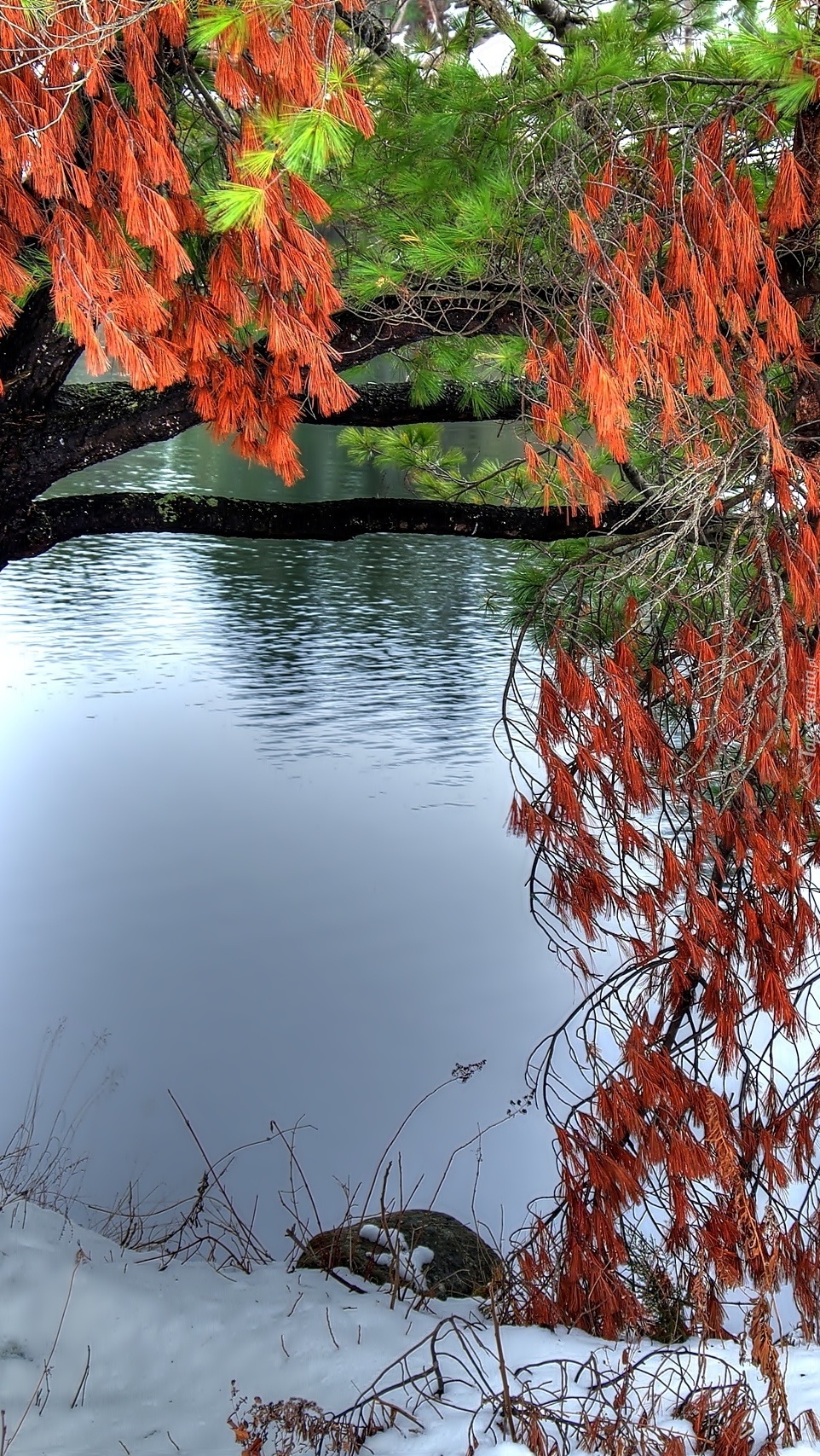 Edytor tapety: Kolorowe drzewo nad rzeką