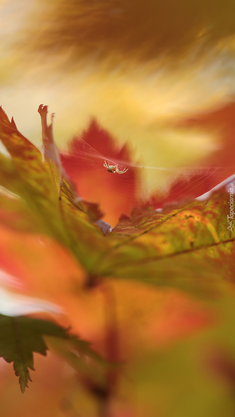 Edytor tapety: Mały pajączek nad liściem