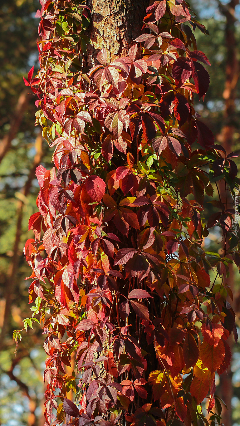 Edytor tapety: Liście dzikiego wina na drzewie