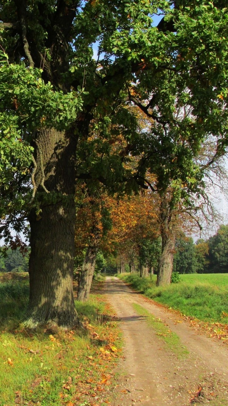 Edytor tapety: Drzewa nad polną drogą