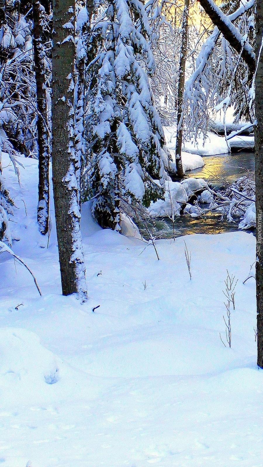 Edytor tapety: Ośnieżone drzewa nad rzeką