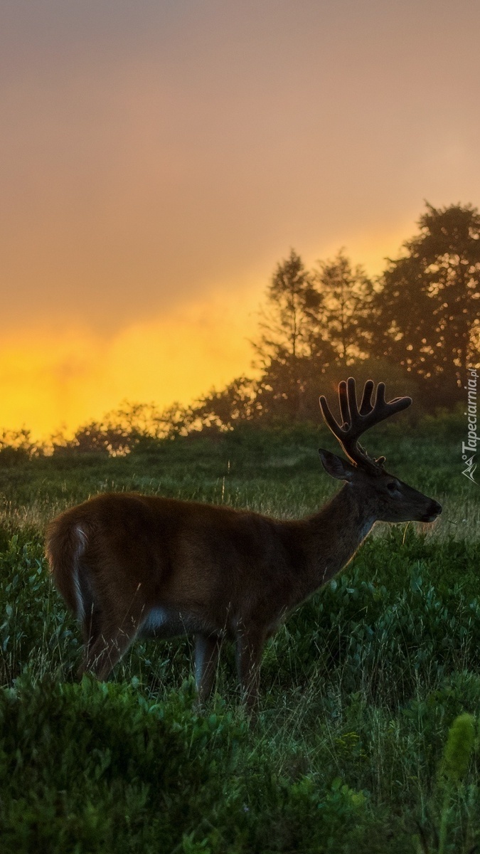 Edytor tapety: Jeleń o zachodzie słońca na łące