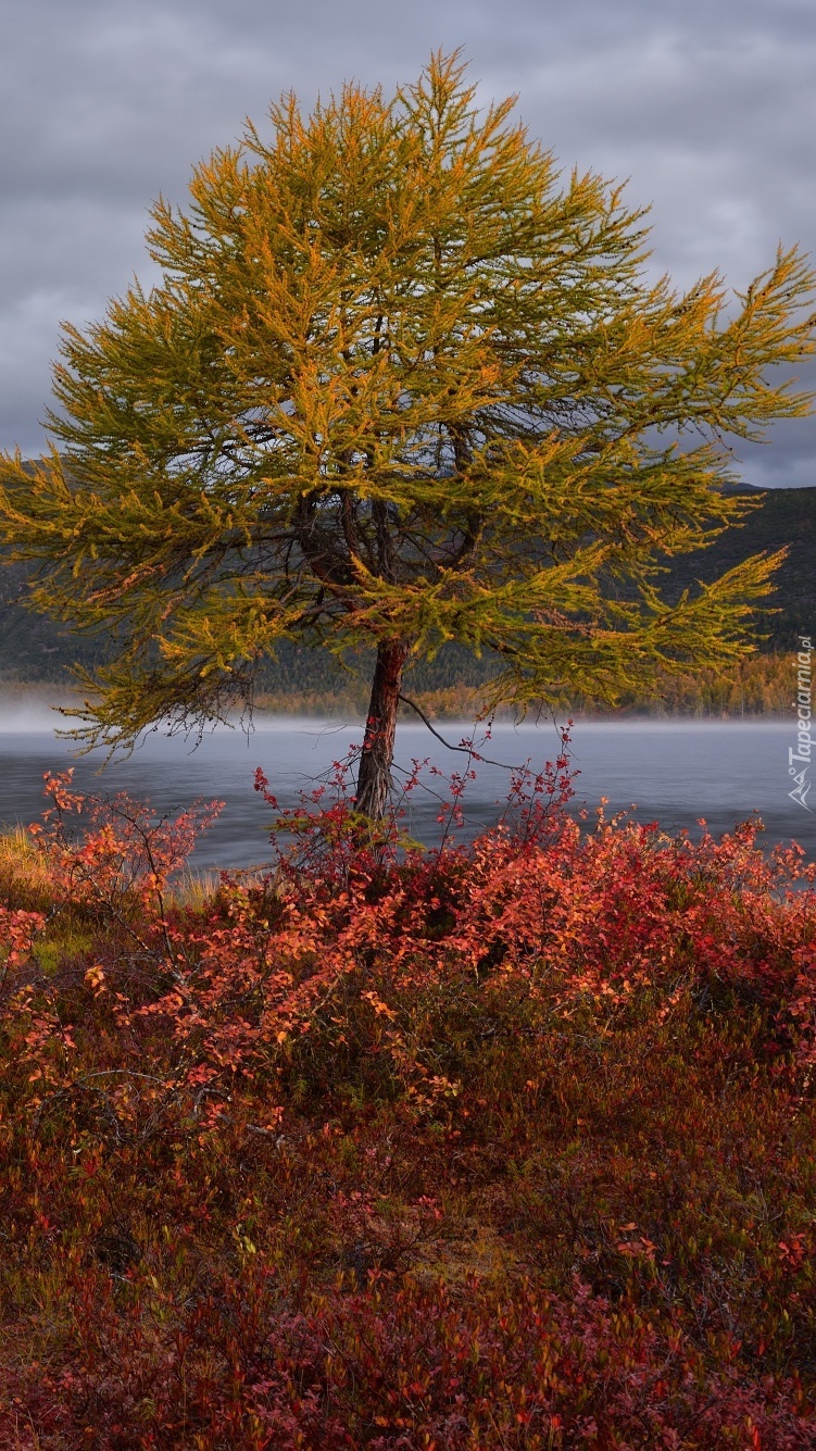 Edytor tapety: Drzewko nad jeziorem Jack London