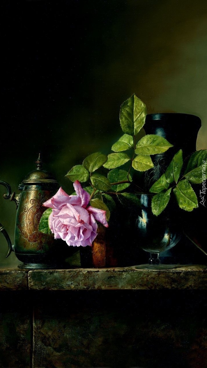 Edytor tapety: Martwa natura z różą na obrazie