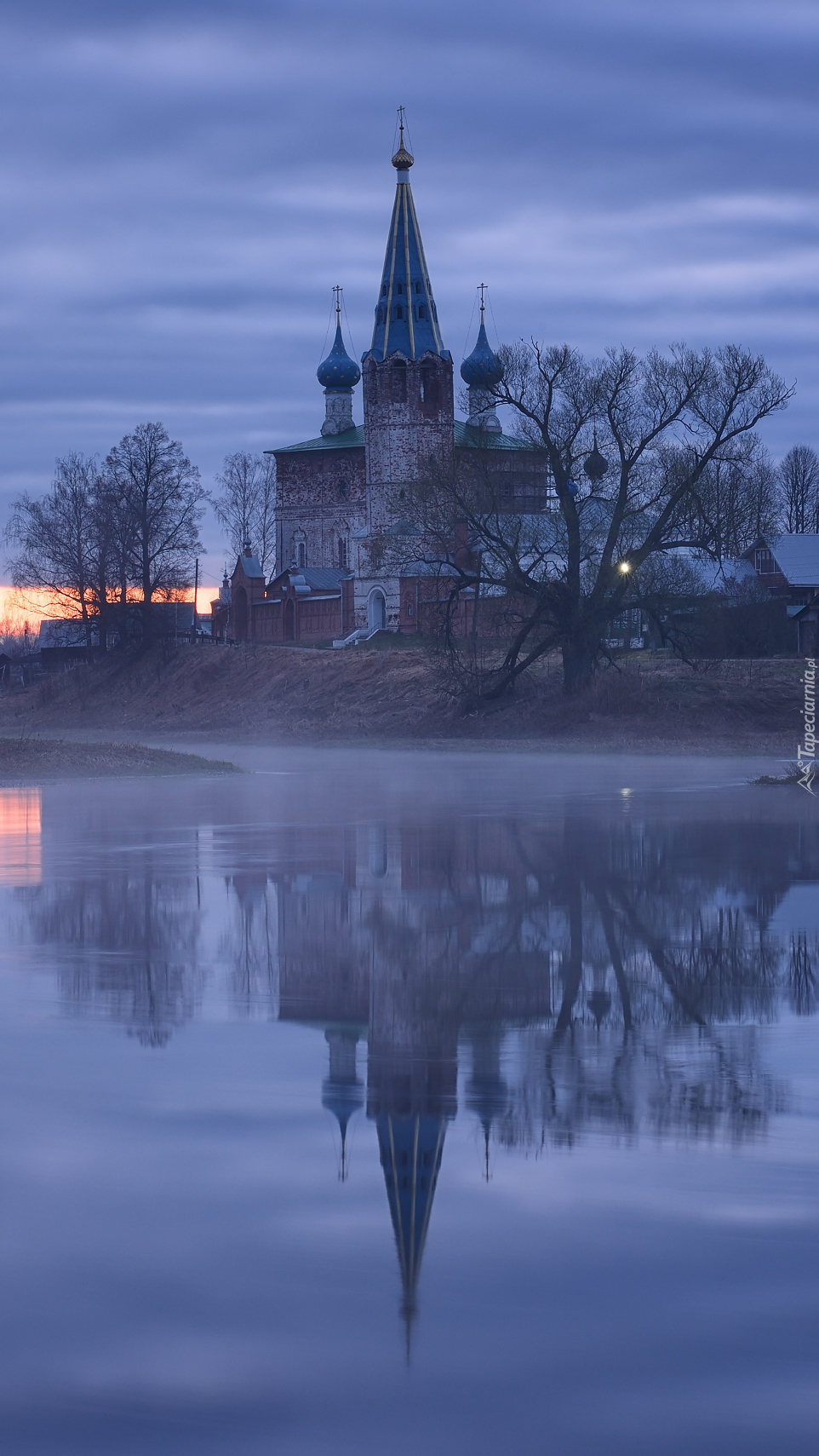 Edytor tapety: Cerkiew o świcie nad rzeką Tuza