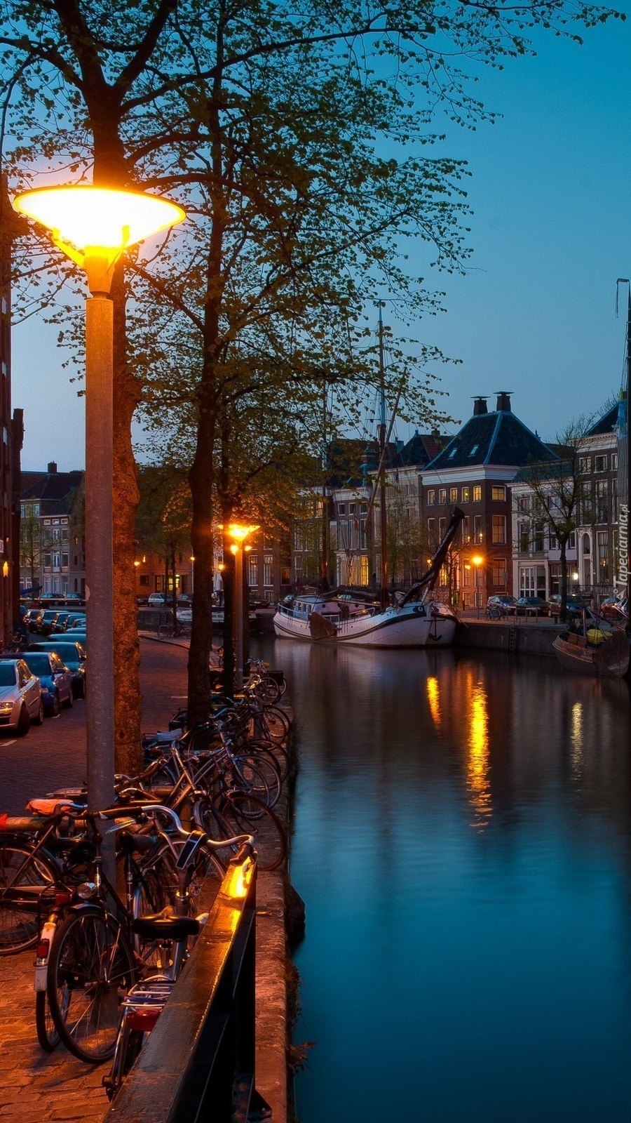 Edytor tapety: Rzeka nocą w Amsterdamie