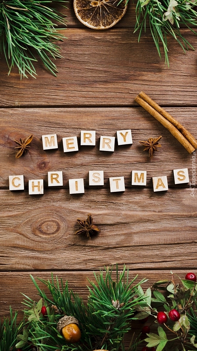 Edytor tapety: Napis Merry Christmas z ozdobami