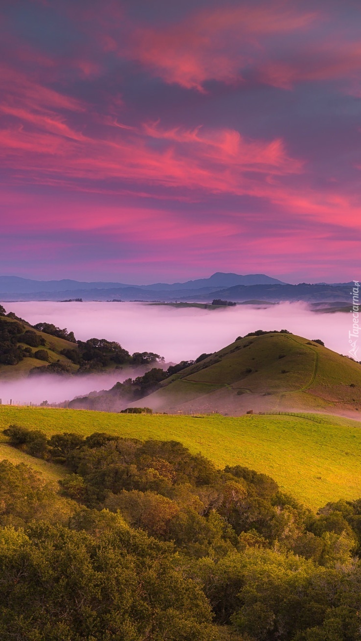 Edytor tapety: Wzgórza we mgle o poranku