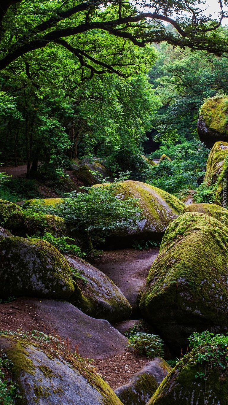 Edytor tapety: Omszałe kamienie w lesie