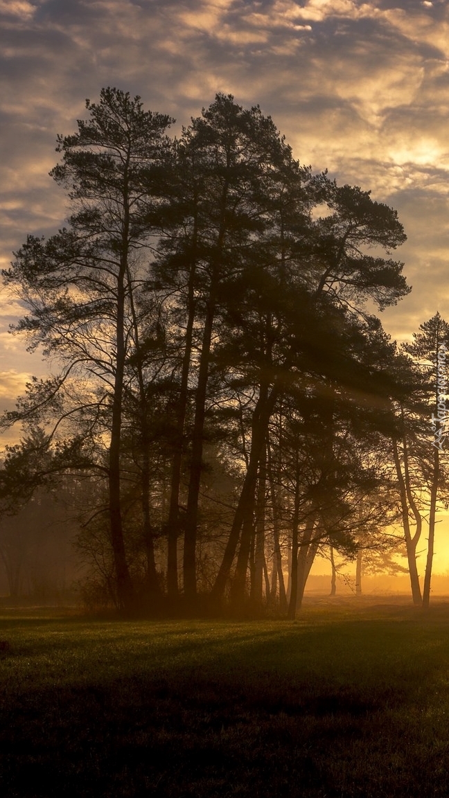 Edytor tapety: Blask słońca za drzewami