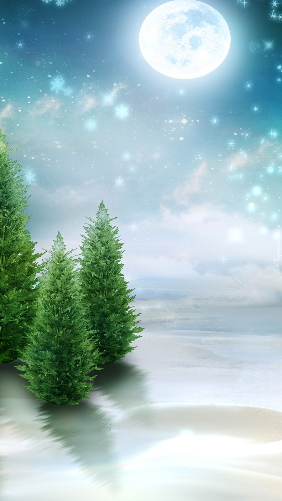 Edytor tapety: Choinki w blasku księżyca