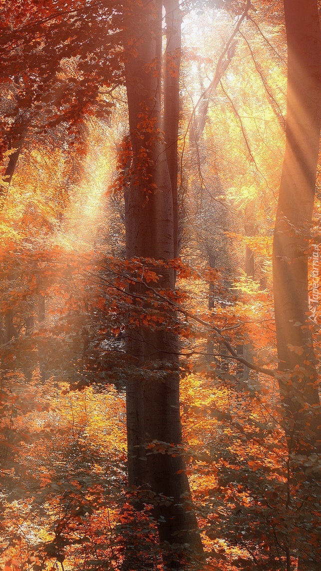 Edytor tapety: Jesienne promienie słońca w lesie