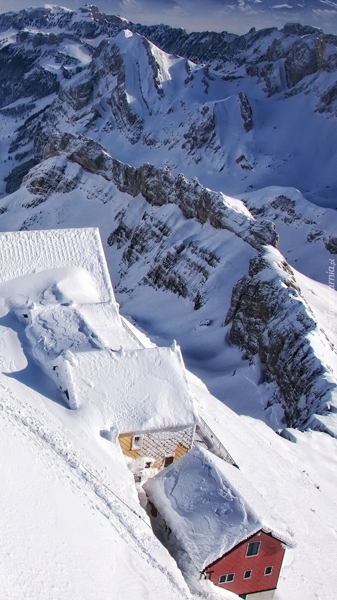 Edytor tapety: Zaśnieżone dachy domów w górach