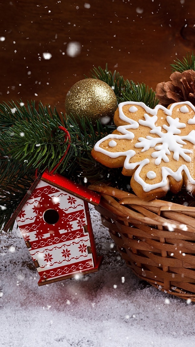 Edytor tapety: Koszyk z ozdobami świątecznymi