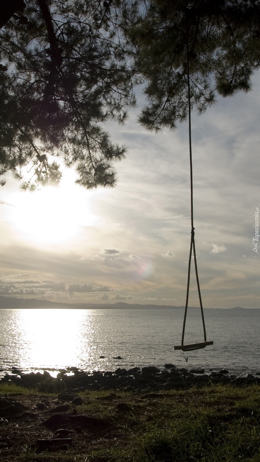 Edytor tapety: Huśtawka nad brzegiem morza