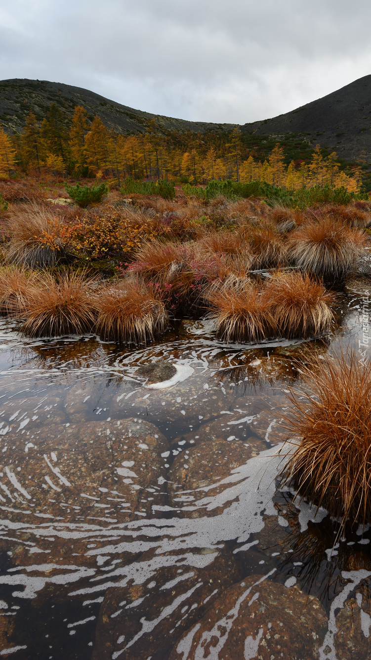 Edytor tapety: Kępy trawy przy jeziorze Anemone