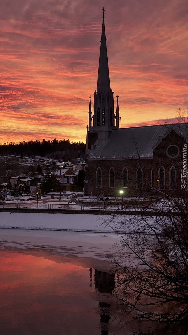 Edytor tapety: Rzeka Chicoutimi obok kościoła