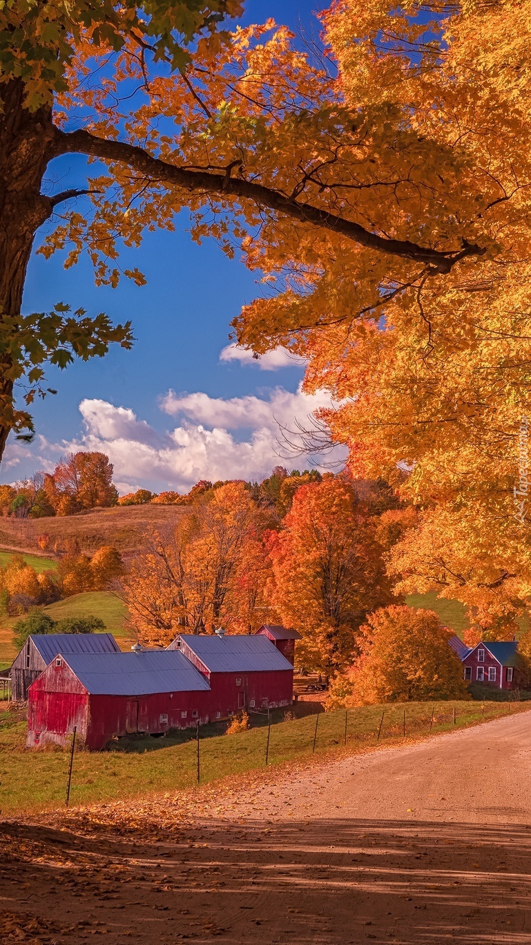 Edytor tapety: Czerwone stodoły we wsi Reading
