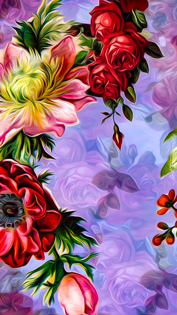 Edytor tapety: Kwiaty na kolorowym tle