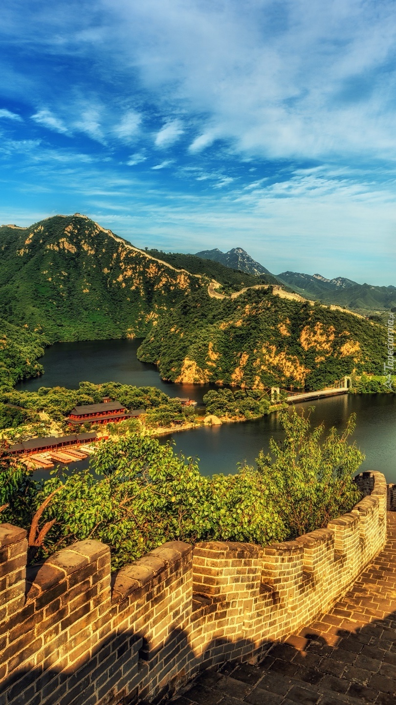 Edytor tapety: Wielki Mur Chiński nad górskim jeziorem