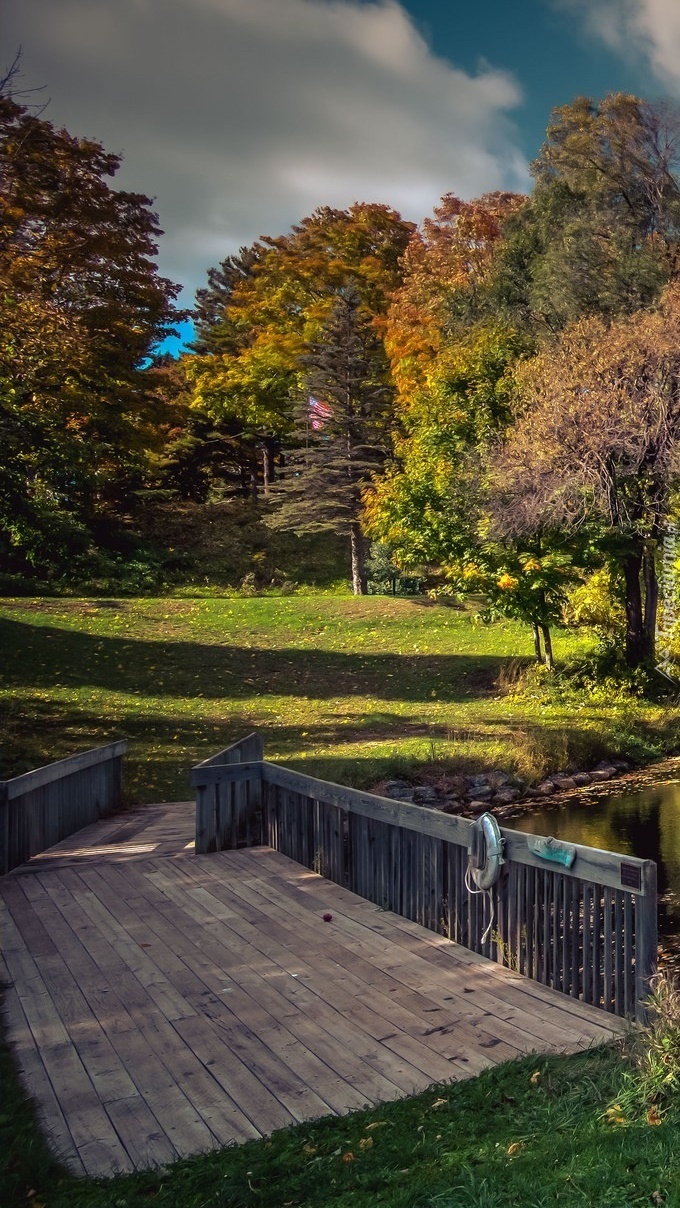 Edytor tapety: Drewniany mostek na tle drzew