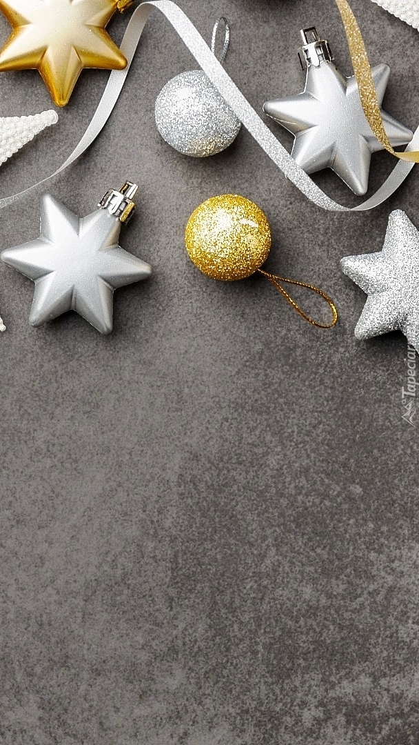 Edytor tapety: Bombki z gwiazdkami i wstążką