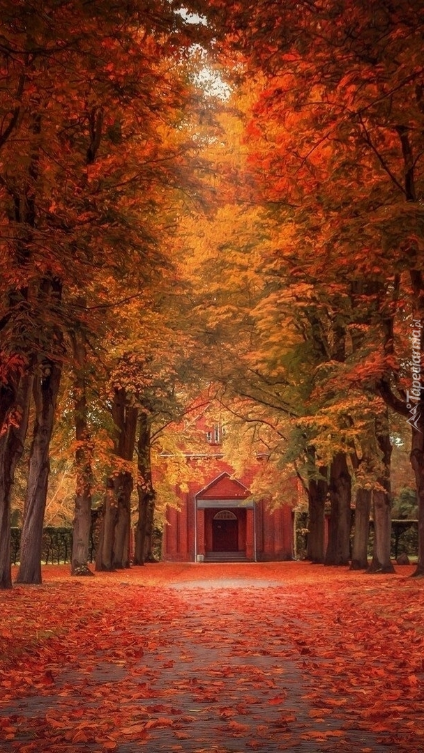 Edytor tapety: Parkowa alejka usłana czerwonymi liśćmi