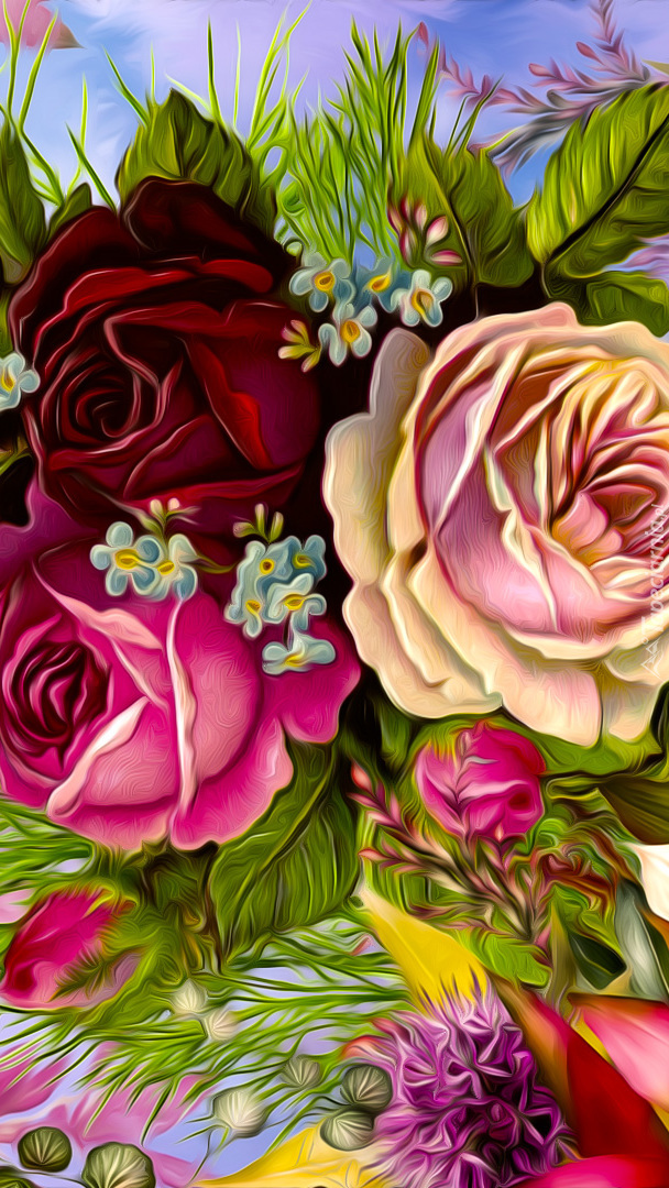 Edytor tapety: Różnokolorowe róże