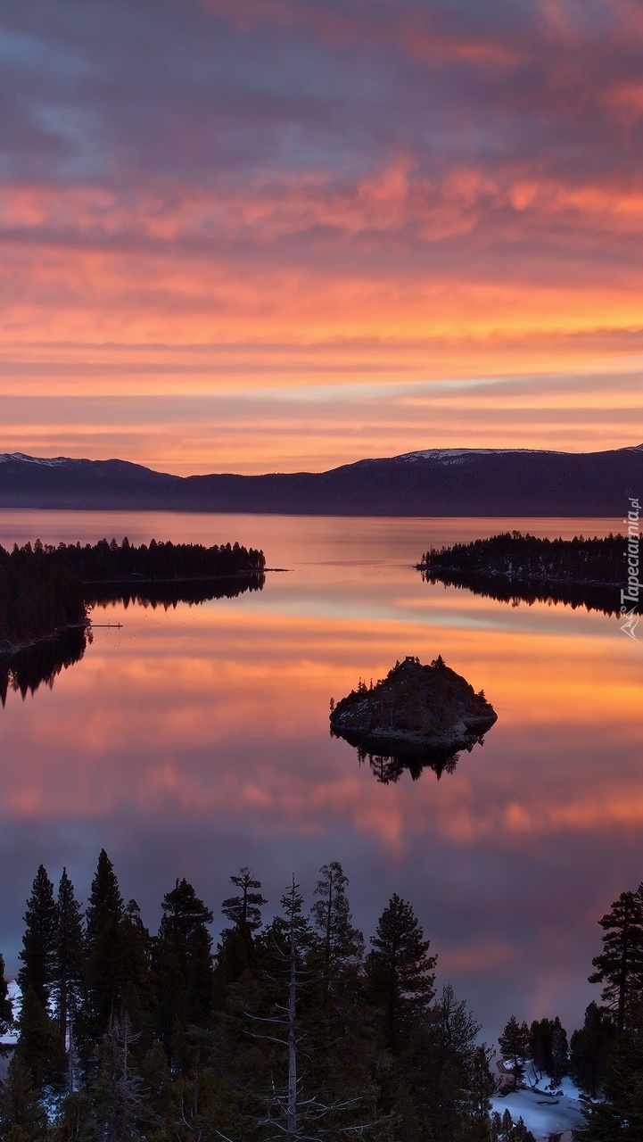 Edytor tapety: Jezioro i lasy o zachodzie słońca