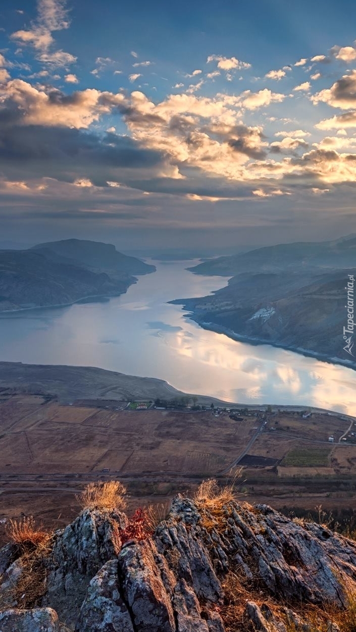 Edytor tapety: Góry Rodopy nad jeziorem o poranku