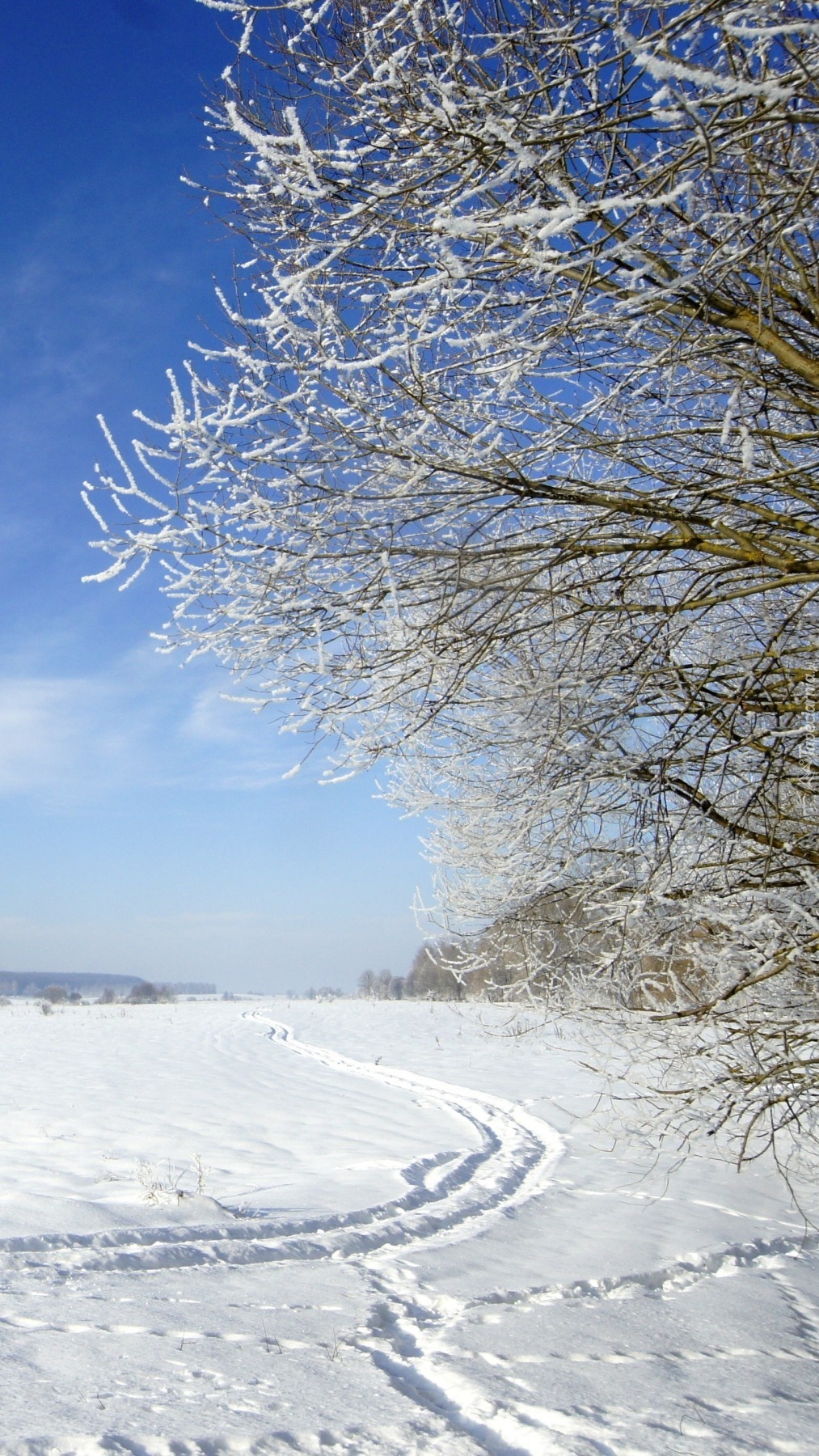 Edytor tapety: Ośnieżone gałęzie drzewa