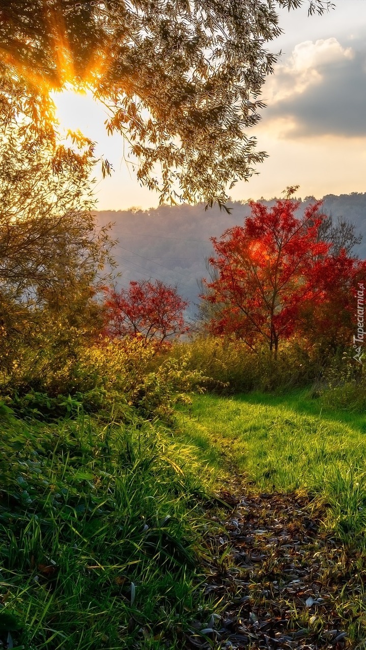Edytor tapety: Kolorowe drzewa w promieniach słońca